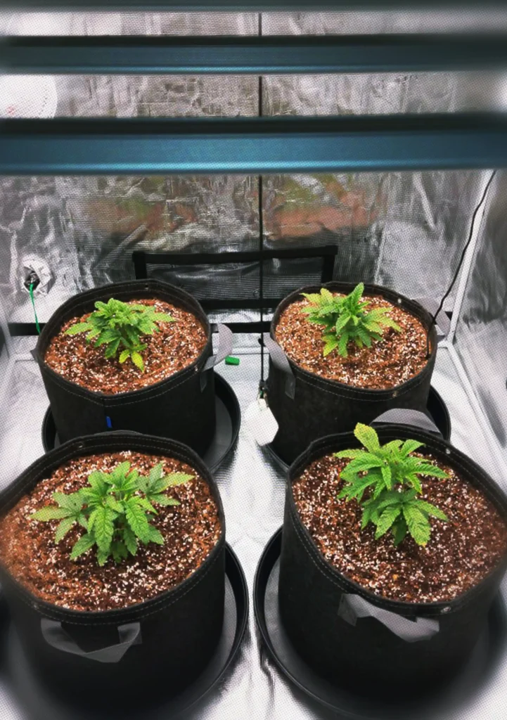 Week 3: The girls in the first pic are three weeks old, and let’s be real — I fumbled the start like a rookie dropping the ball at a championship game. But guess what? The Green House Seeds genetics swooped in like a superhero and saved the day. These ladies are tougher than a $2 steak! In the next week, I’m planning to move them into some fancy 30-liter fabric pots to give their roots room to party.
