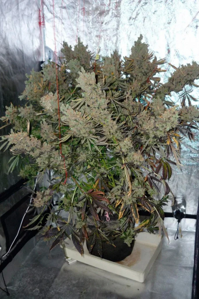 95 days: Exactly 40 days of flowering. I’ve trimmed the burdocks, removed some of the stringers, and raised the lamp almost to the ceiling. They’ve been sitting on water for three days now, not eating at all. I don’t know, maybe it’s stress from pruning.