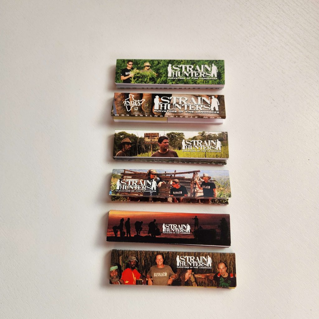After each trip, like Morocco or India, Strain Hunters released limited-edition packs of printed rolling papers: route maps, field photos, strain names like Afghan Kush or Malawian Gold. Thin, yellowish, like old tracing paper, but with watermarks—leaves or compasses. Fans used them not only for smoking, but also as bookmarks in diaries or even as wall frames. A true artifact—a reminder of the risk and the hunt for genetics. Unfortunately, they’re rare to find anywhere now, only at auctions on fan sites!